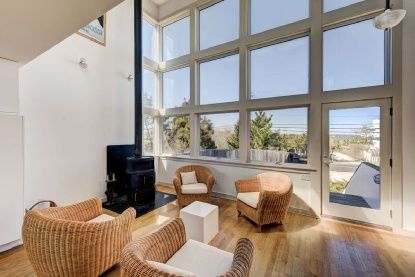 Sunny skies and smooth sailing ahead when you're on the decks of this bright and airy oceanfront beach house! Spacious decks provide views galore of both Moriches Bay and Atlantic Ocean from the lower level to the top floor's spacious loft and master bedroom suite. Two additional bedrooms and full bathroom on the lower level, both offering room for large gatherings and entertaining. The ground level has an impressive floor to ceiling wall of g