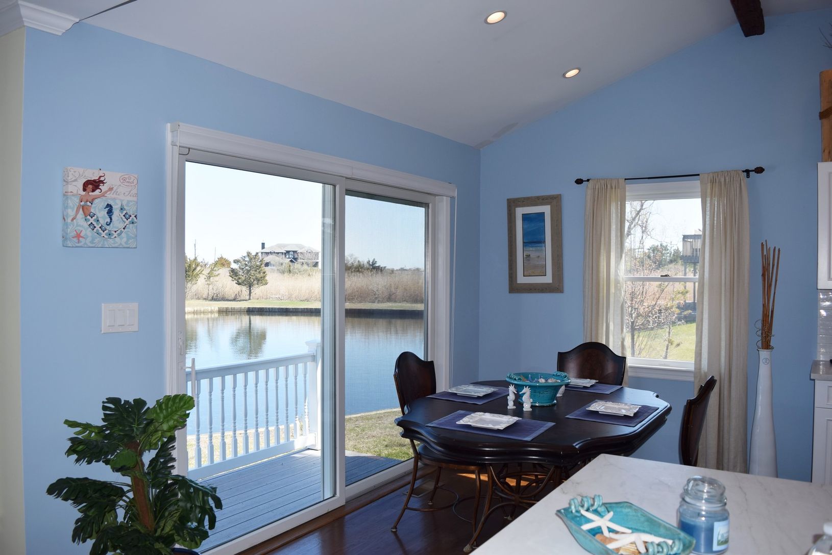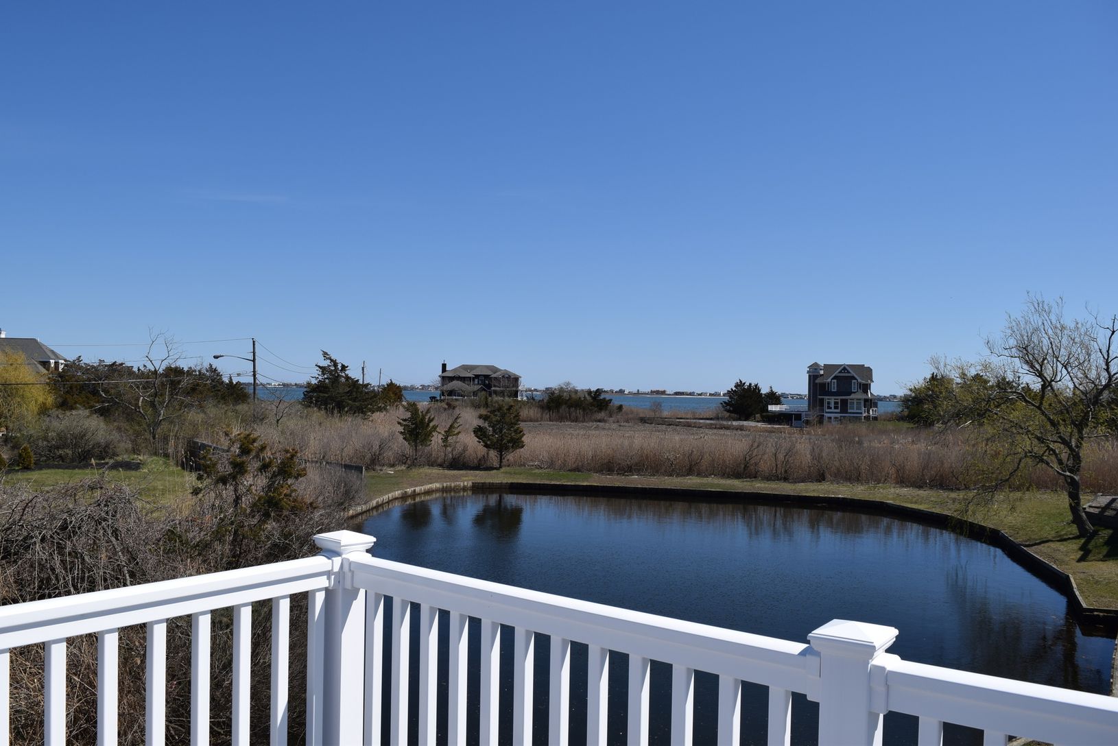 Turn-key home on quiet cul-de-sac. Recently renovated with new kitchen and baths. Open kitchen/dining area/livingroom with fireplace. Room for pool. Roof deck for further water views. Plans/approvals available to add a second story.