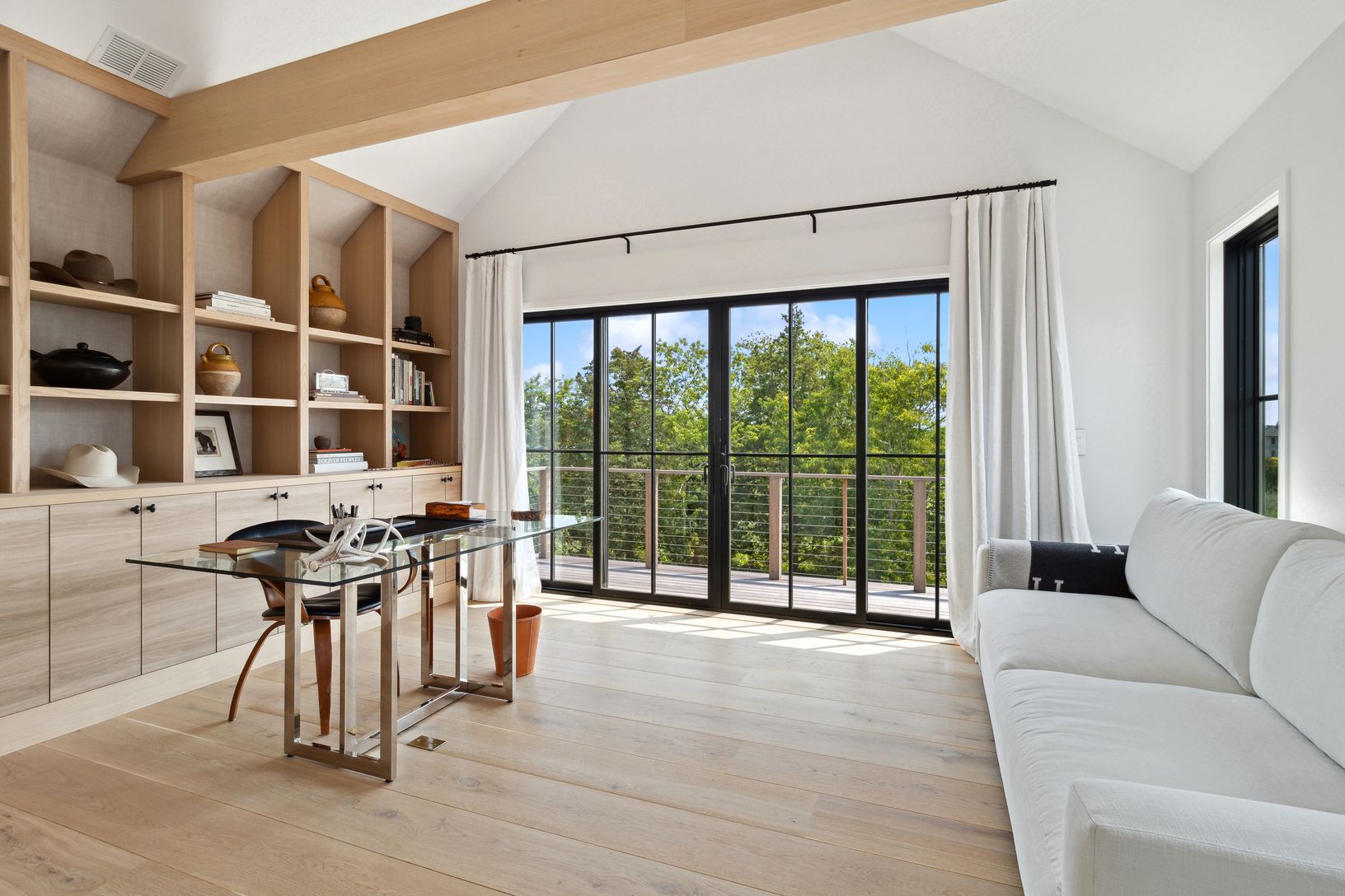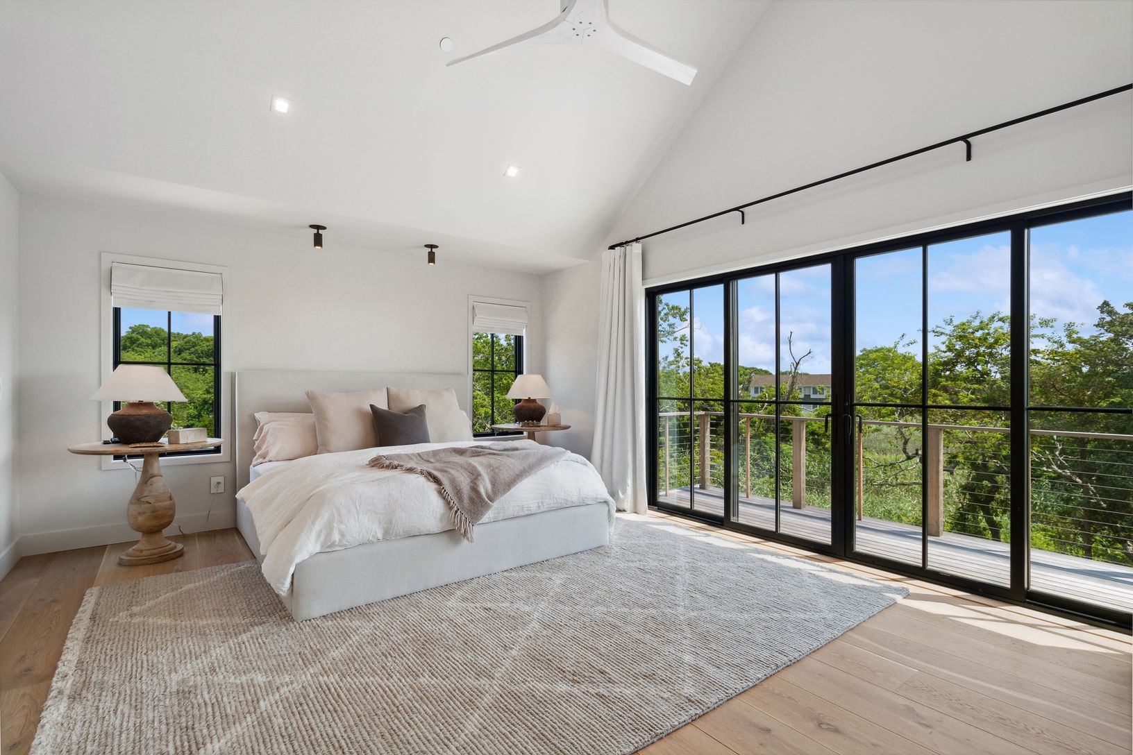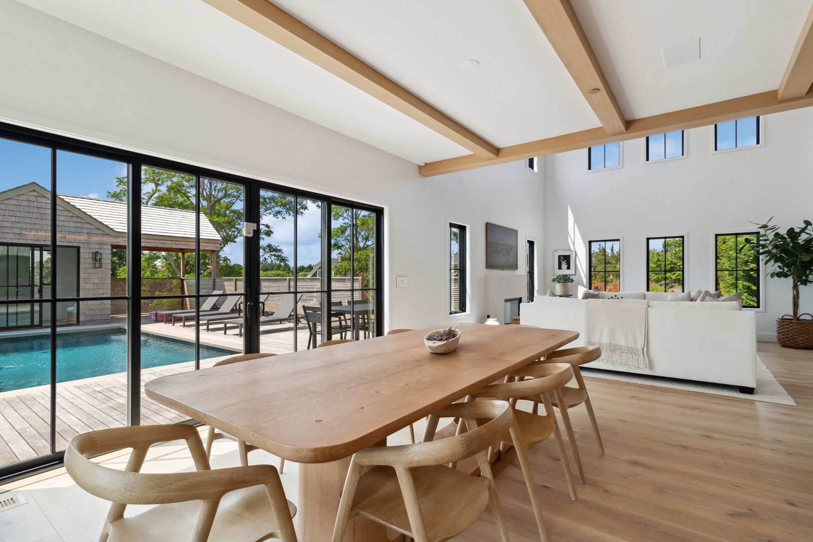 Quite possibly the coolest summer rentals in Westhampton... Perfectly positioned at the end of one of a sought after street, this brand new, uber-chic home is available for the first time ever as an idyllic Hamptons summer retreat. Beautifully finished throughout, this light, bright and luxurious home offers an incredible 5 bedroom layout, high-end kitchen, high ceilings and walls of windows throughout that flood the home with the most magnifi