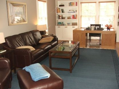 Set on a quiet, country lane south of the Highway, this spacious, updated Post Modern offers living area with fireplace, dining room, den, kitchen with granite counters and stainless steel appliances, 4 bedrooms, 3.5 baths, central air conditioning, surround sound stereo system inside and out, hardwood floors and porch. Every bedroom has a television and there is internet access. The beautiful yard includes a heated swimming pool.