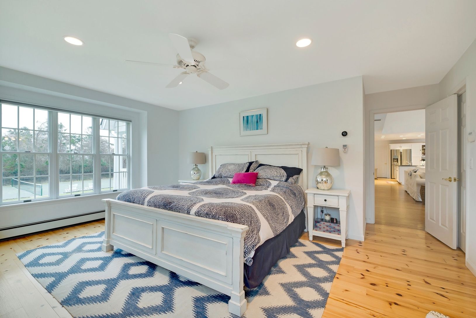 Easy living in this spacious post modern home tucked away in Baymeadows at Westhampton. Features include six bedrooms (including a first floor master suite), five bathrooms and wonderful entertaining spaces throughout. Outside, the heated pool is surrounded by decking and lush landscaping, plus the two plus acre property boasts a Har-Tru tennis court as well! Within close proximity to the Village of Westhampton Beach and area ocean beaches, th