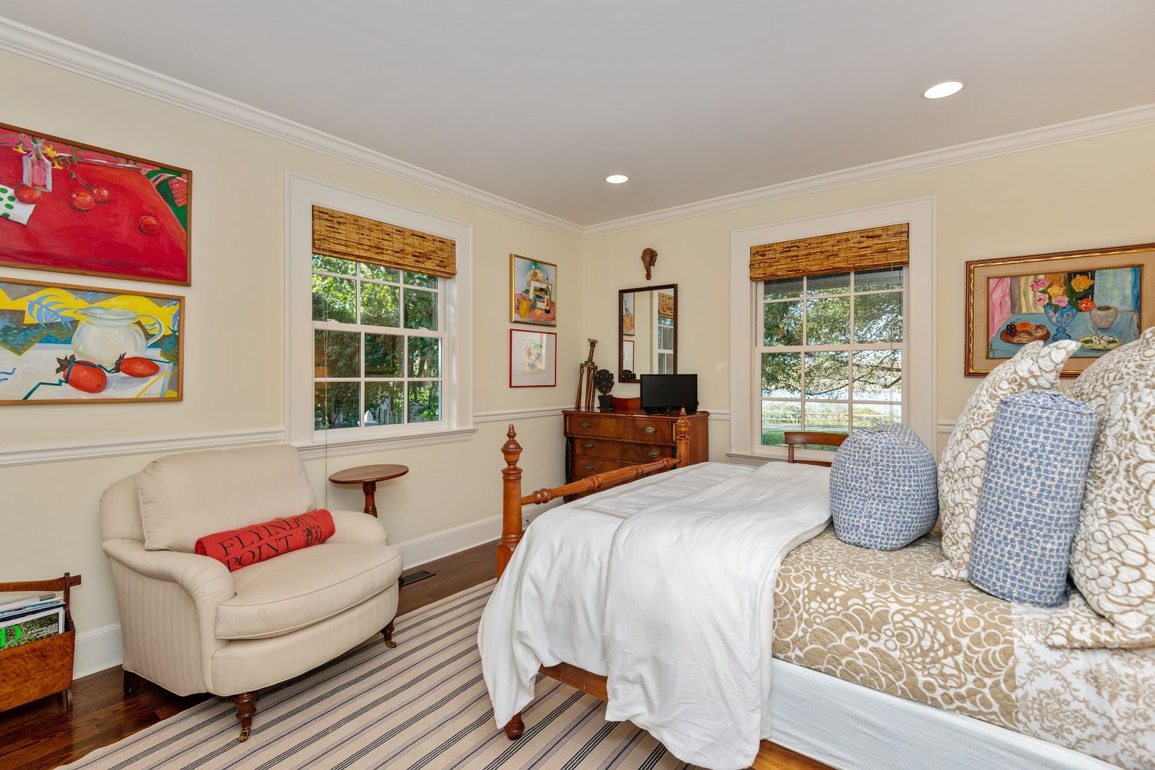 On Burnett Creek there is this waterfront gem situated between Mecox Bay and world famous Flying Point Beach. This unique property features a 7200 sq ft residence, a private dock for access to the creek/bay for paddle boarding and kayaking. detached garage with artist studio and a screened in dining room with a state of the art indoor and outdoor kitchens to make pool side entertaining a breeze. Custom over-sized heated gunite pool with