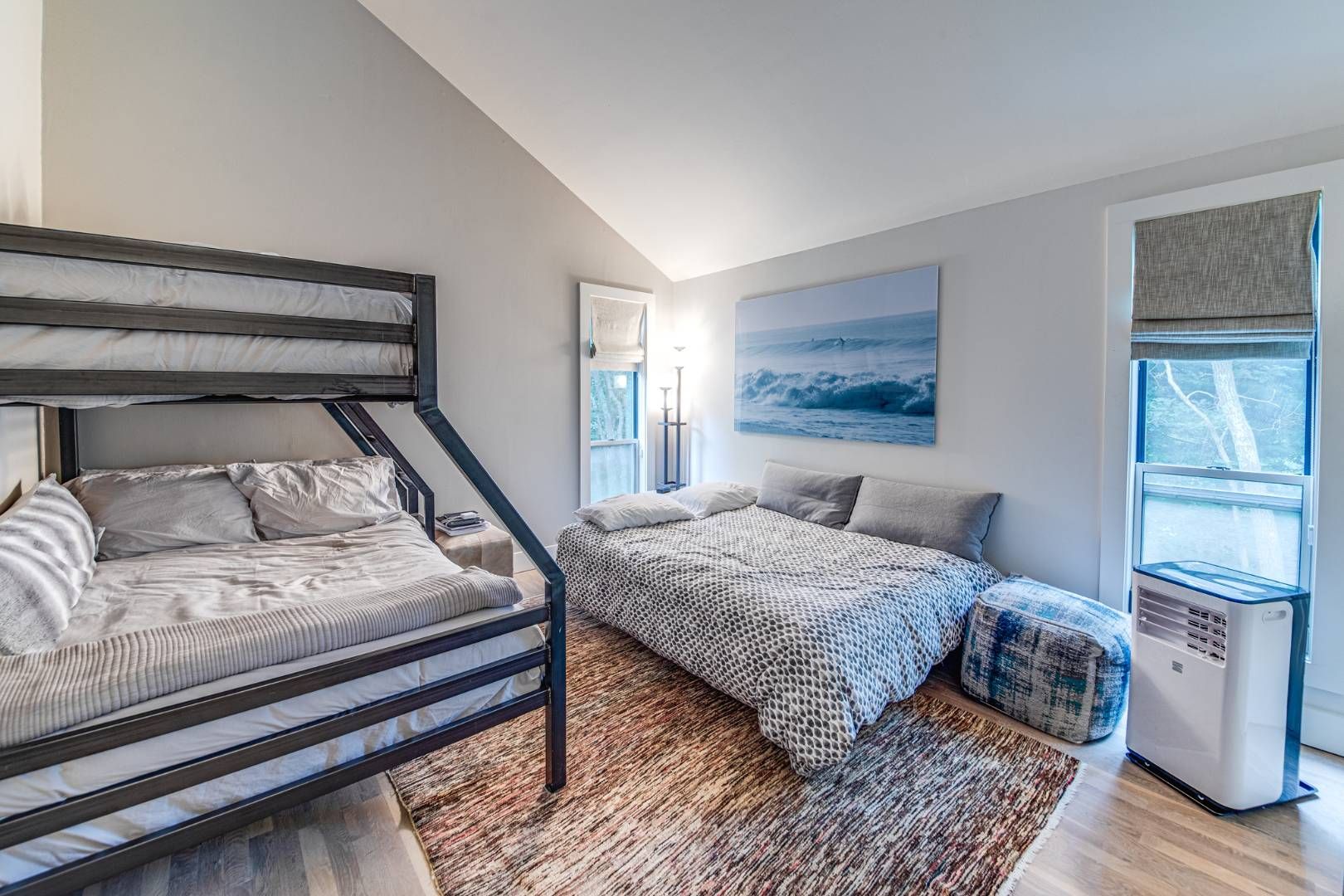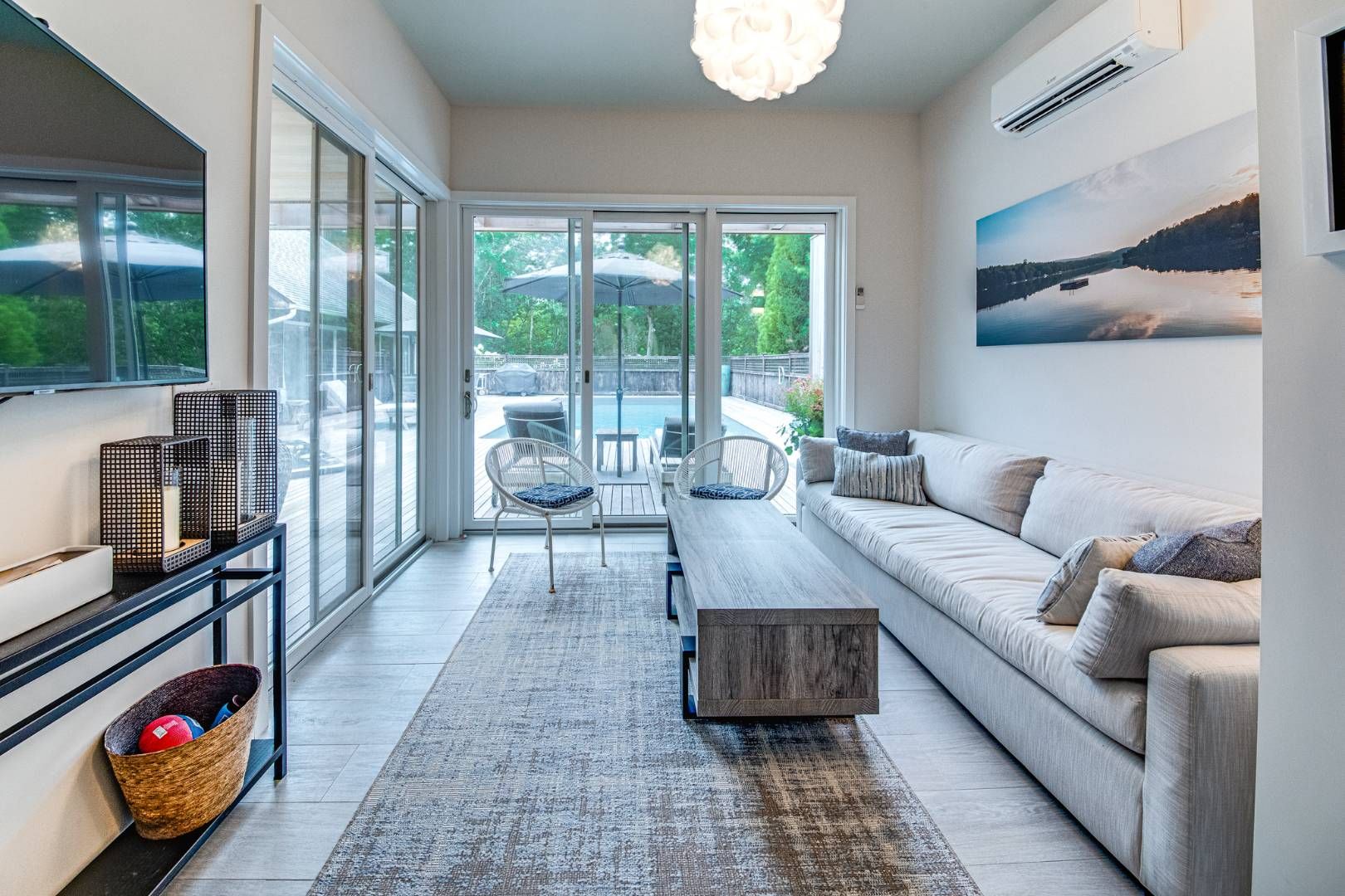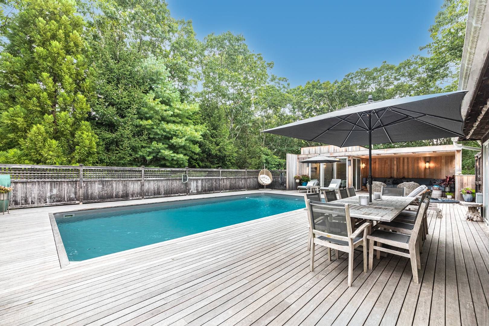 This ultra chic East Hampton retreat is the perfect summer or year-round getaway. Nestled amidst a private, lushly landscaped shy-acre, this newly-renovated home boasts a light-filled great room with fireplace and modern kitchen, 3 bedrooms/ 3.5 baths, and fabulous finished lower level with bonus space. You and your guests will enjoy al fresco dining and entertaining on the sun-drenched deck with heated pool, hot tub, and gorgeous new modern p