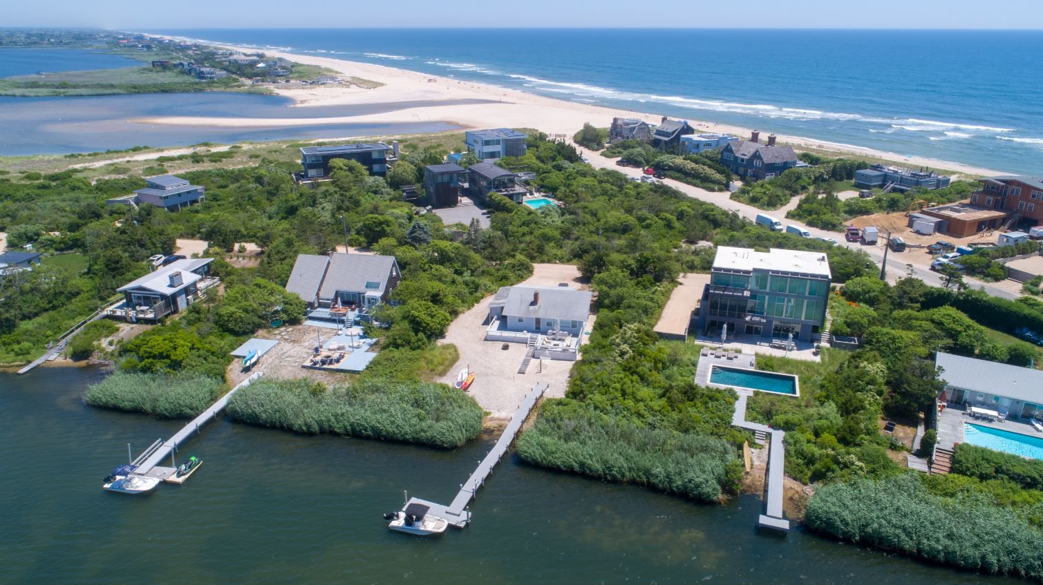 This adorable waterfront beach cottage hosts three bedrooms, one and one-half-baths, and is situated on beautiful Mecox Bay across the beach with breathtaking sunset views.