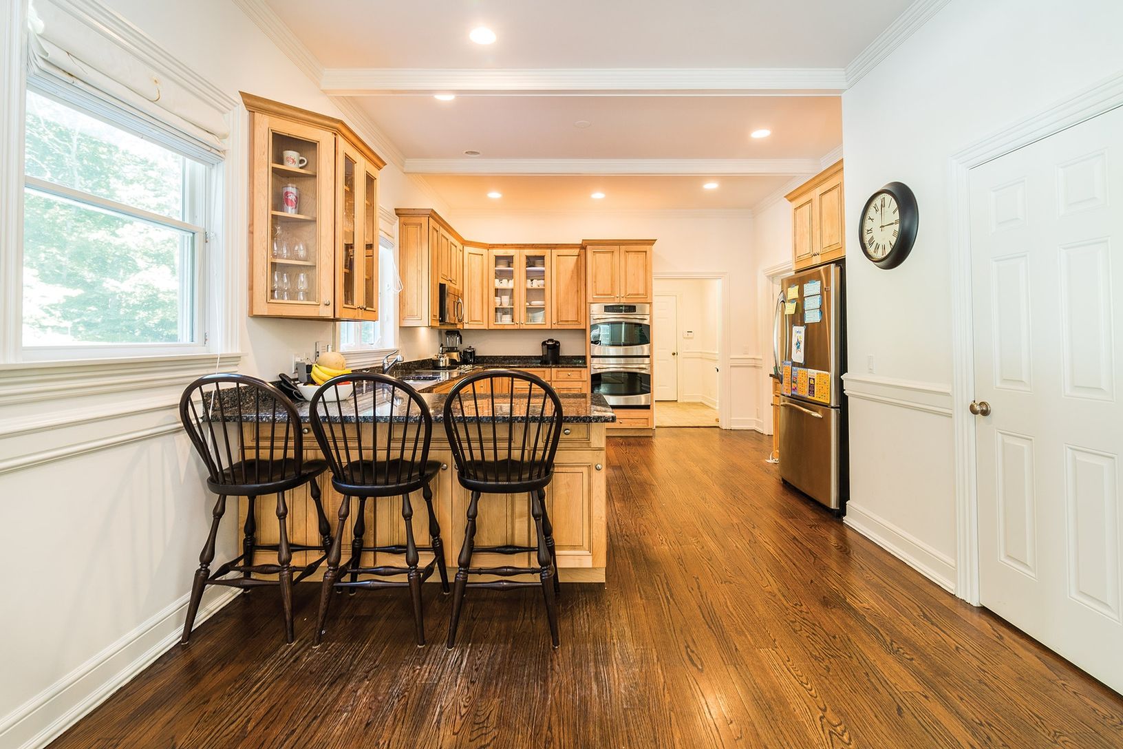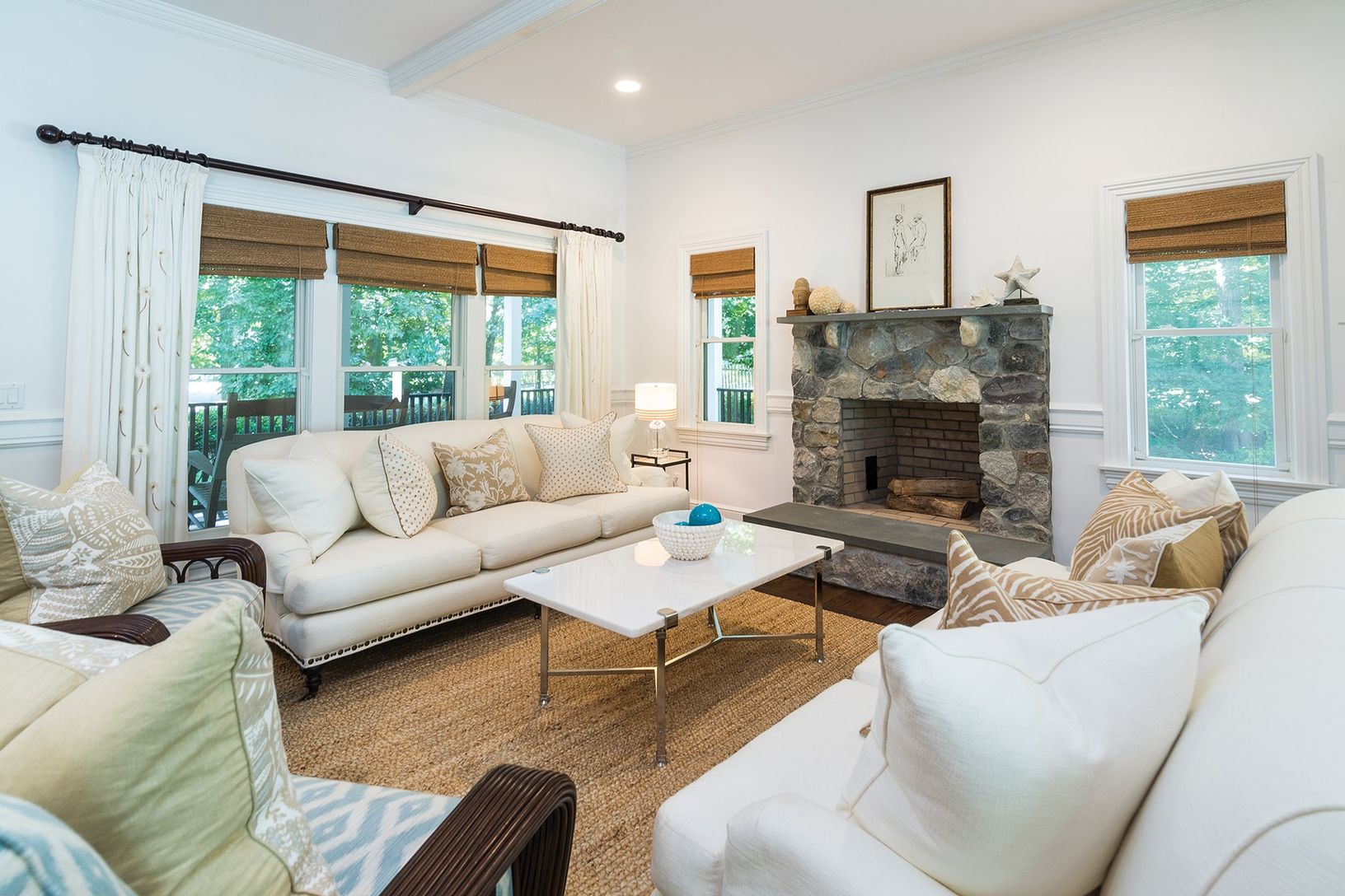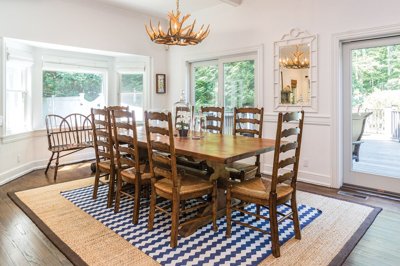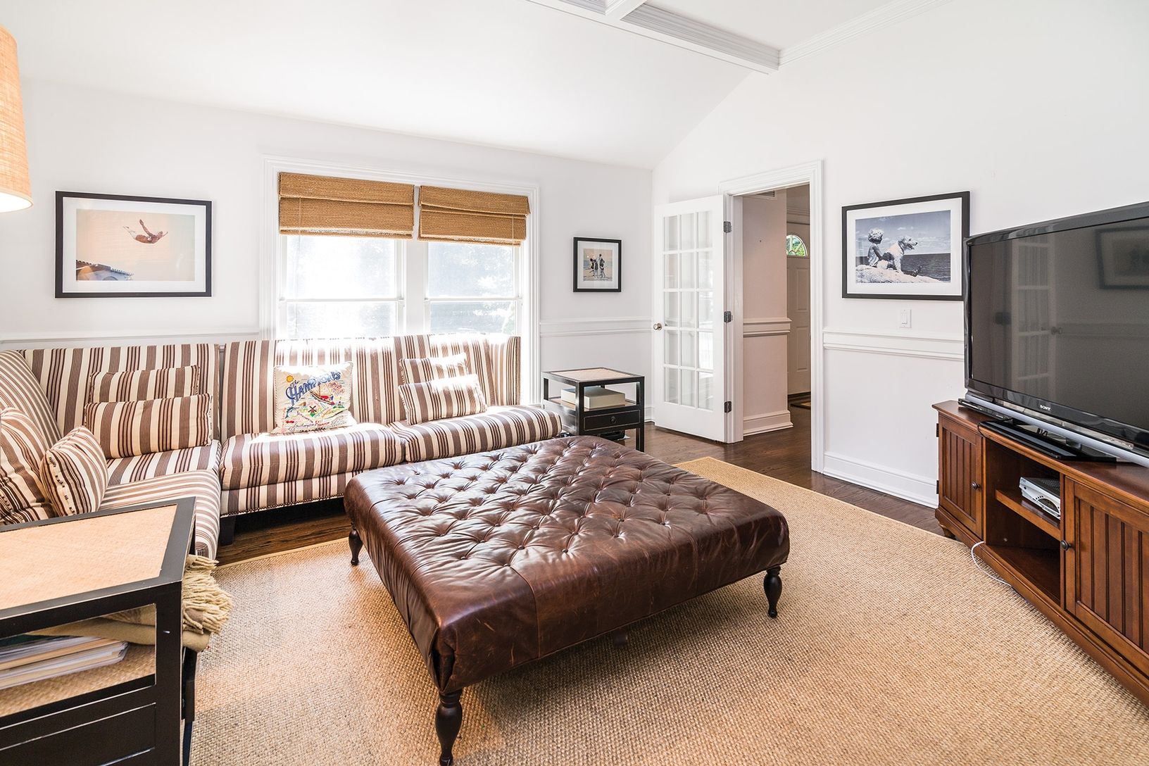 Amagansett beaches, shops, restaurants and transportation are all just a short hop from this centrally located traditional home. Gabled rooflines and a wraparound front porch present clean, elegant lines. Interiors are bright and beautifully finished, with open first floor living area that flows gracefully from the expansive living room with oversize mantel into the dining and eat-in kitchen areas. A den with full bath completes the downstair