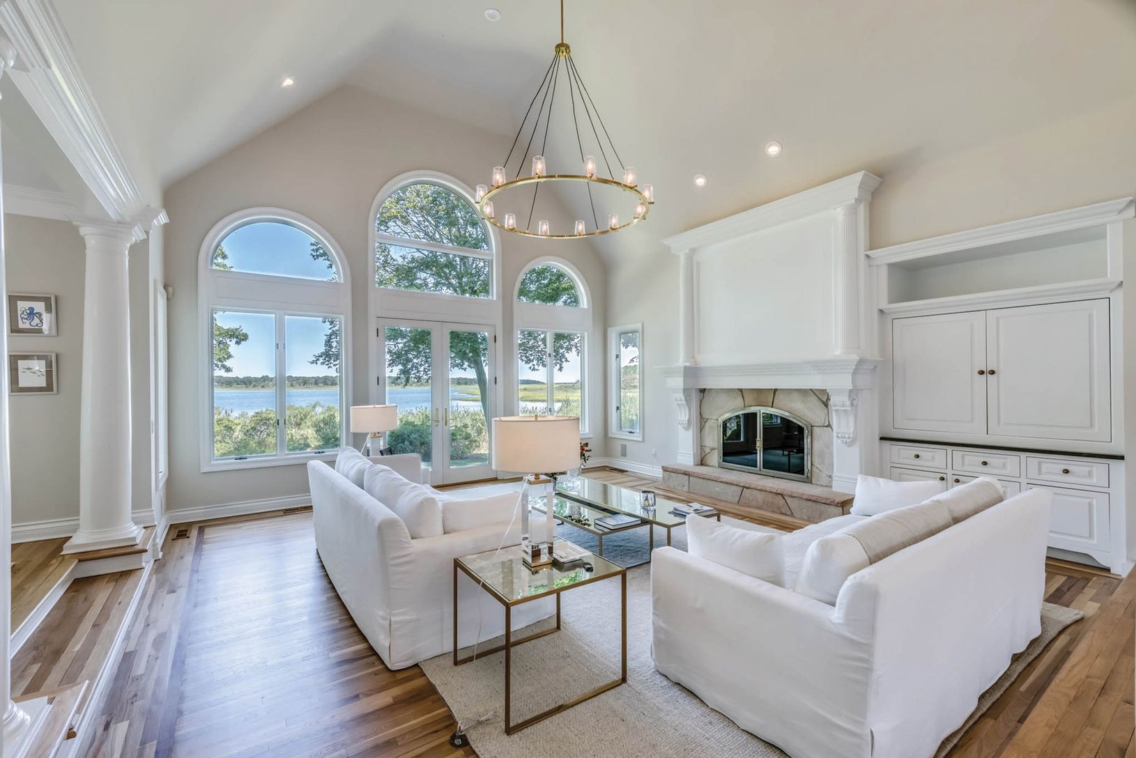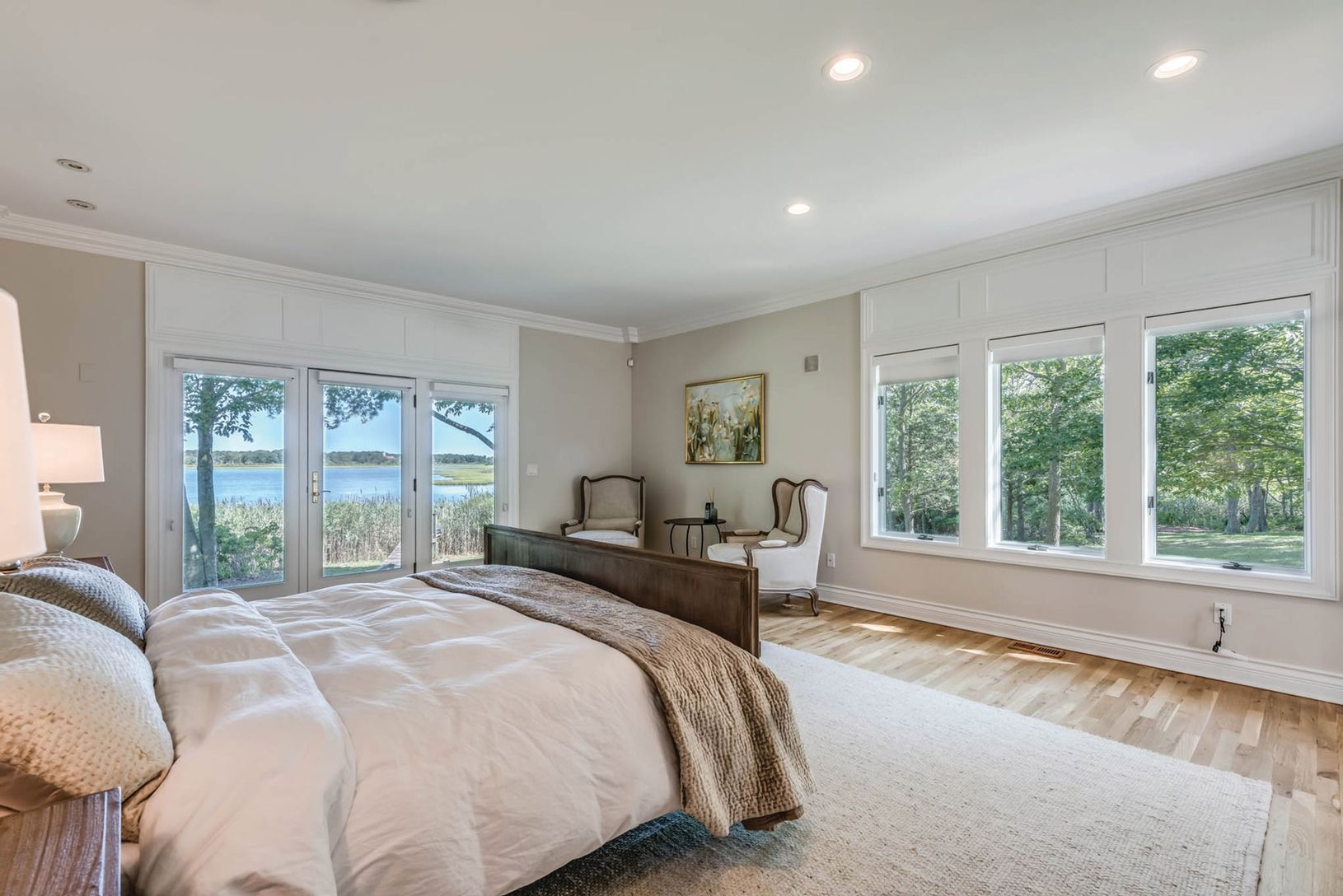 This 3,100+/- sq. ft. home is located on three beautifully landscaped acres with a dock, a pool with water views, and a two-car garage with a 500+/- sq. ft. loft above. Come inside the front door and you will be immediately treated to a gorgeous view of Little Sebonac Creek. The living room features a fireplace, a wet bar, and stunning views of the dock and the waterways that lead out to Peconic Bay. Enjoy sunset views from the dining room and