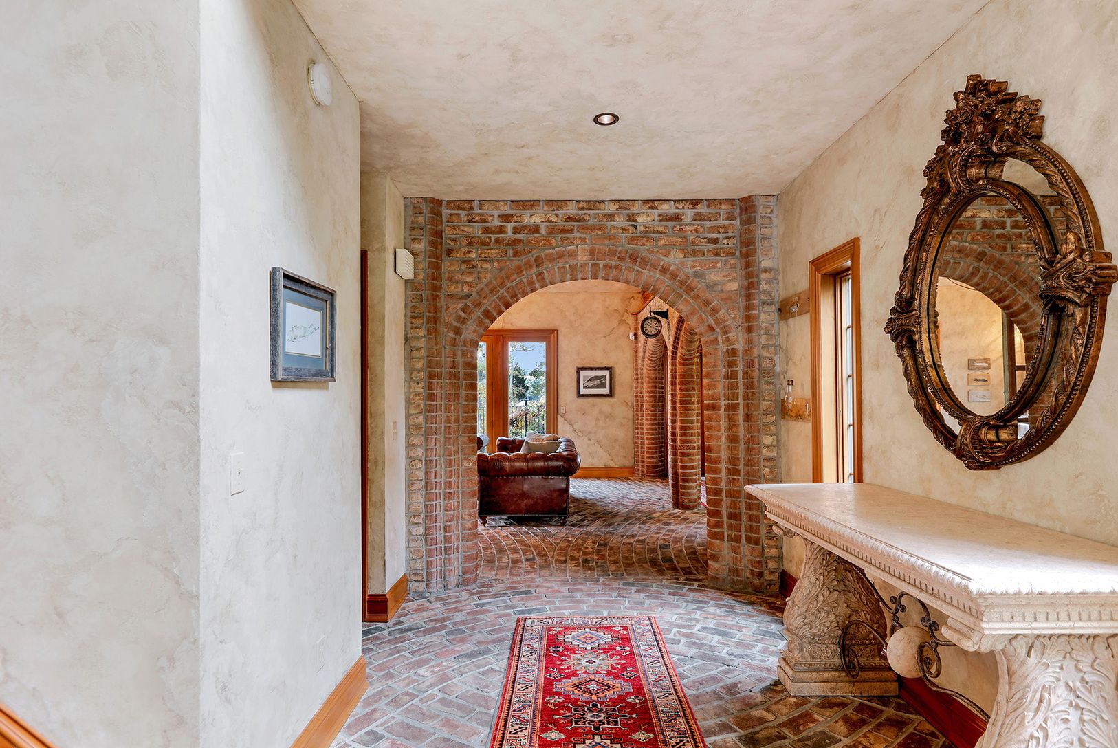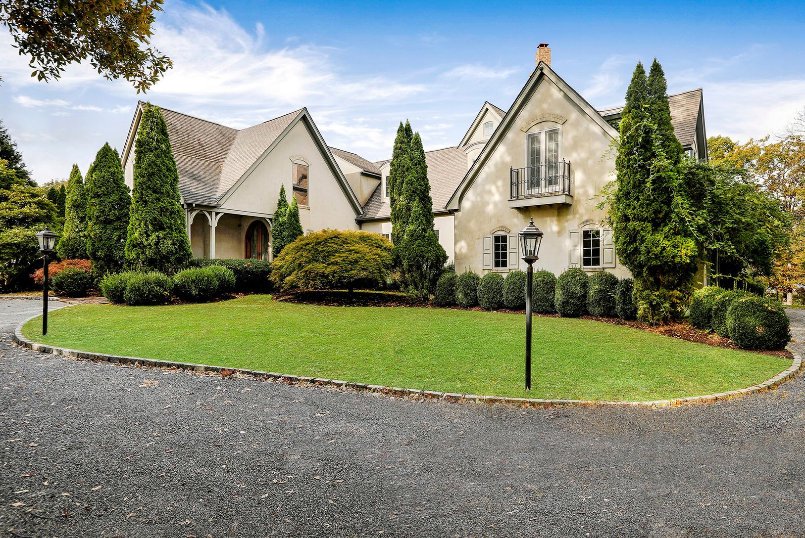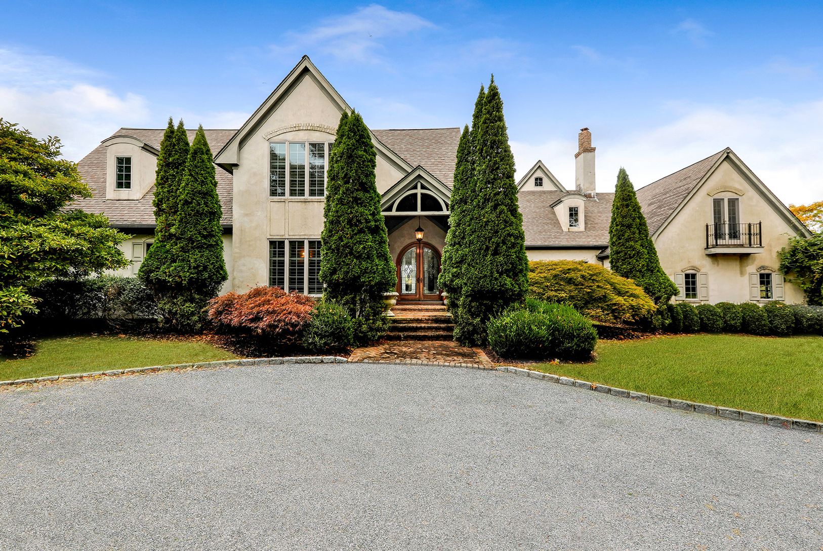 Find peace and privacy at this gated waterfront home, custom-built to evoke a European country house. On 6.9 waterfront acres, with heated gunite pool and views of Peconic Bay, Down's Creek and golf course, this is a luxurious North Fork retreat. Upon entry, the arched foyer leads guests to the double height great room, filled with sunlight. Note the brick floors and massive stone fireplace, reminiscent of earlier times. The adjacent dining