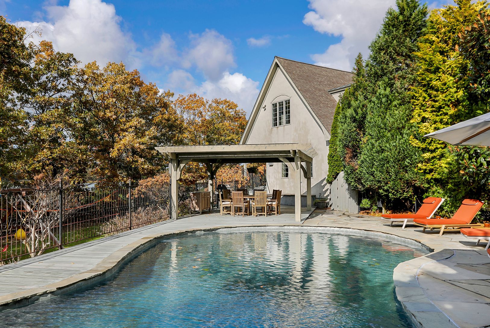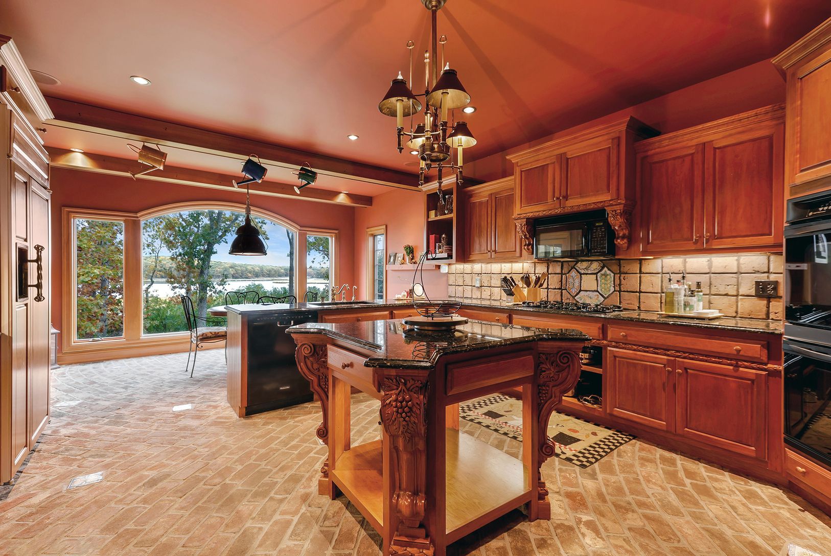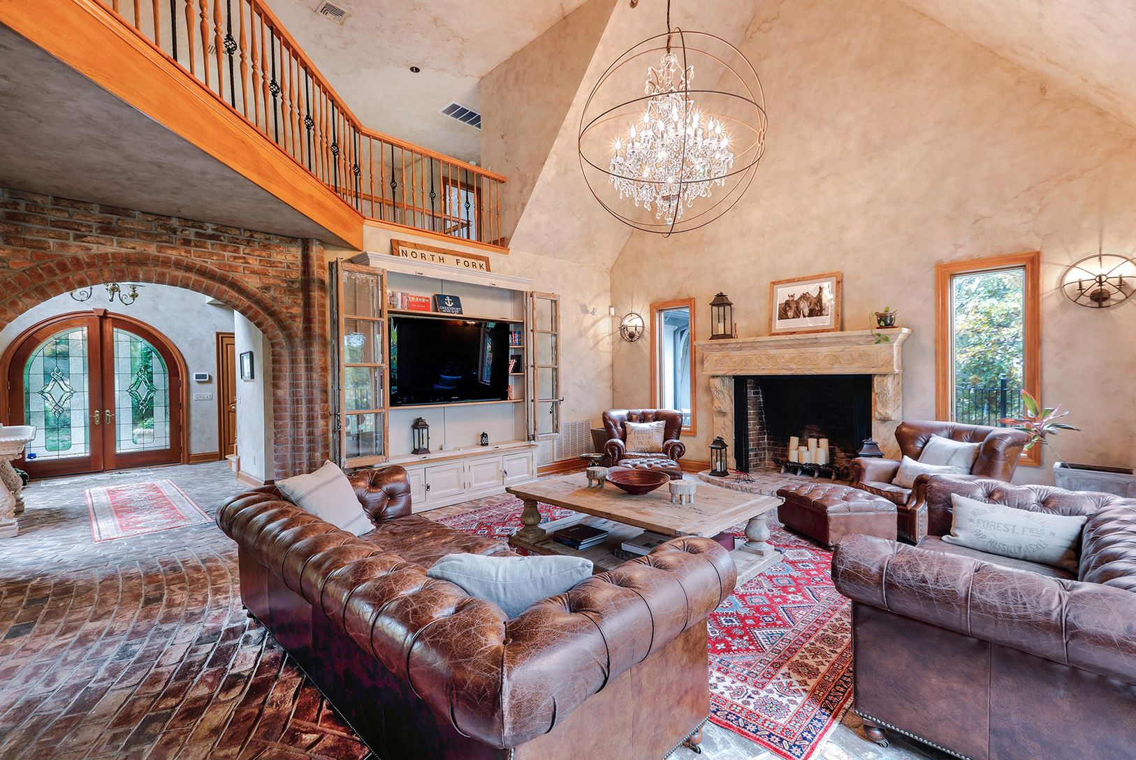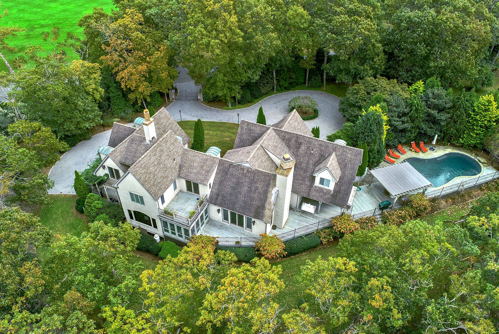 Find peace and privacy at this gated waterfront home, custom-built to evoke a European country house. On 6.9 waterfront acres, with heated gunite pool and views of Peconic Bay, Down's Creek and golf course, this is a luxurious North Fork retreat. Upon entry, the arched foyer leads guests to the double height great room, filled with sunlight. Note the brick floors and massive stone fireplace, reminiscent of earlier times. The adjacent dining