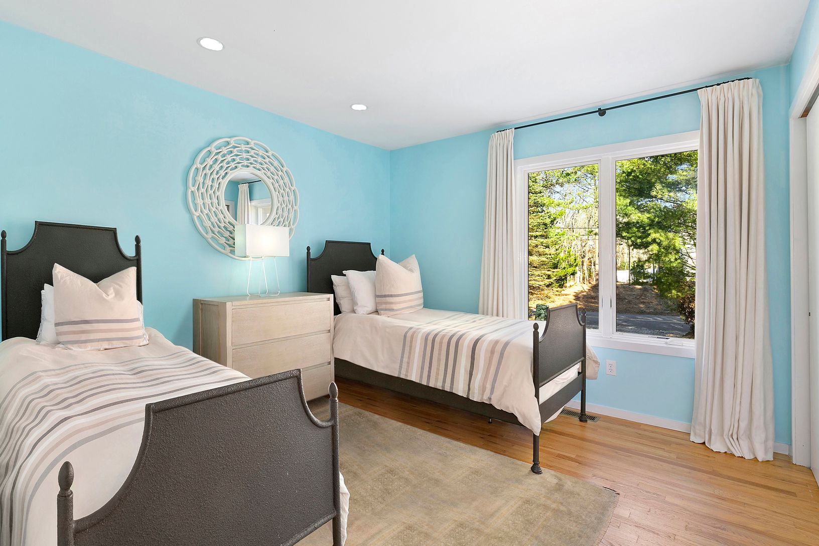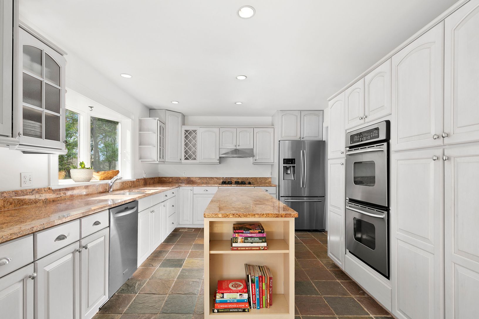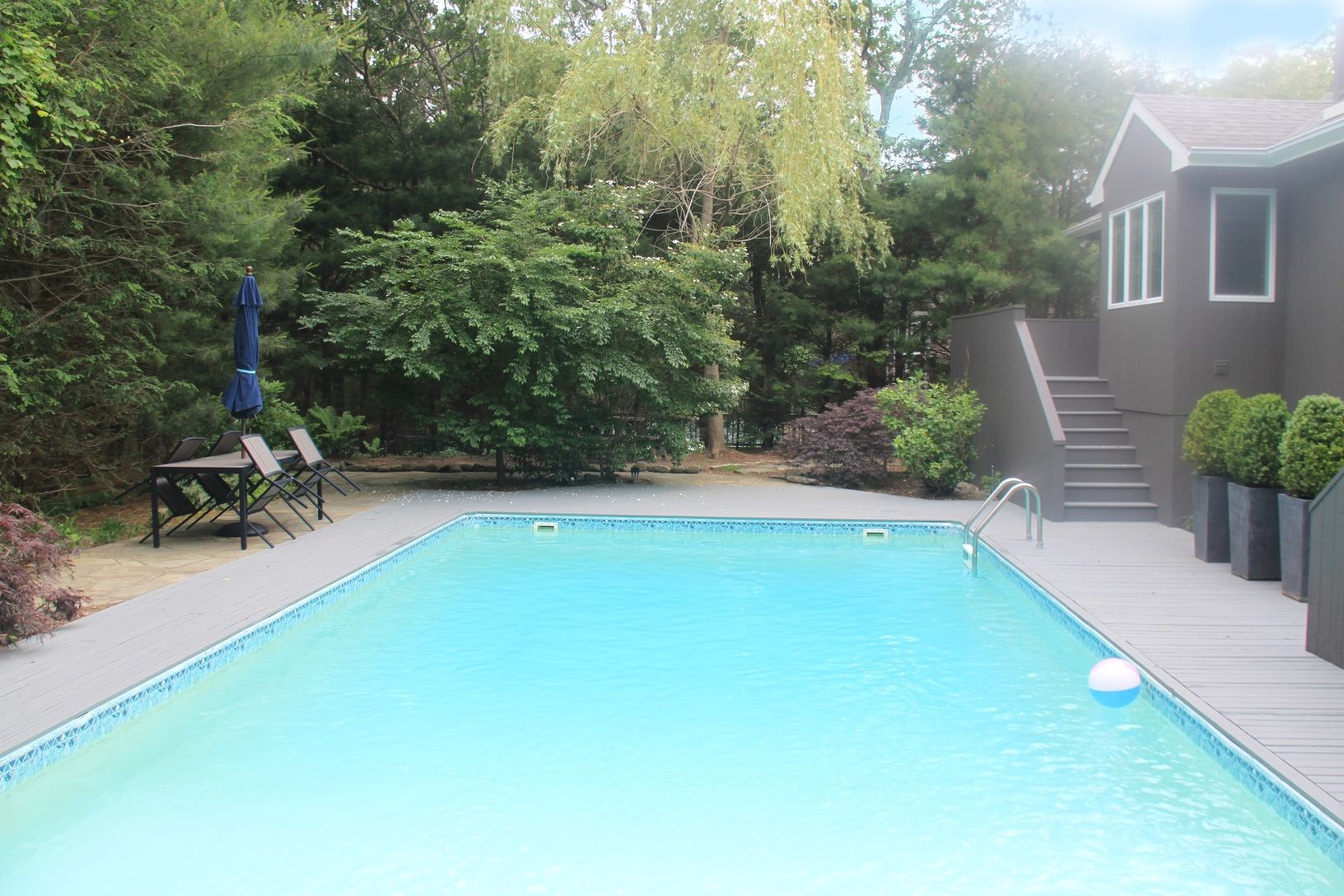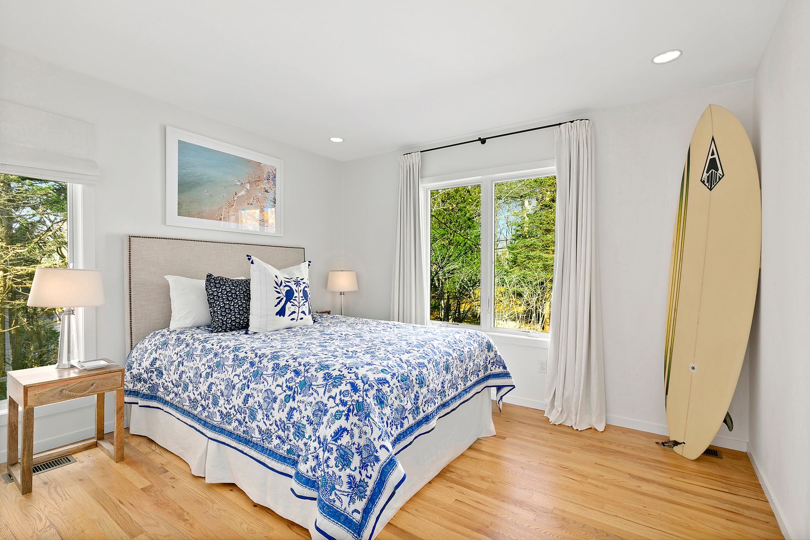 Located between the villages of East Hampton and Sag Harbor, 49 Whooping Hollow Road is a transformed Post Modern. Situated on almost half an acre with 2200 sq.ft. of living space, the home offers a light filled open floor plan. Kitchen, dining and a large living room make up the first floor common area with Anderson sliding doors leading onto the expansive deck for outdoor entertaining. A first floor master suite, two guest rooms and addit