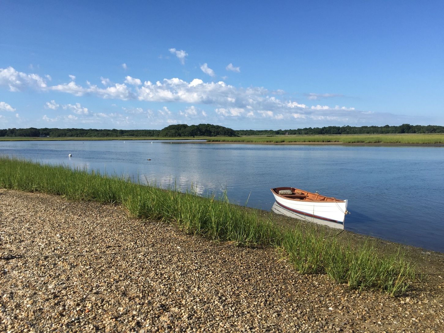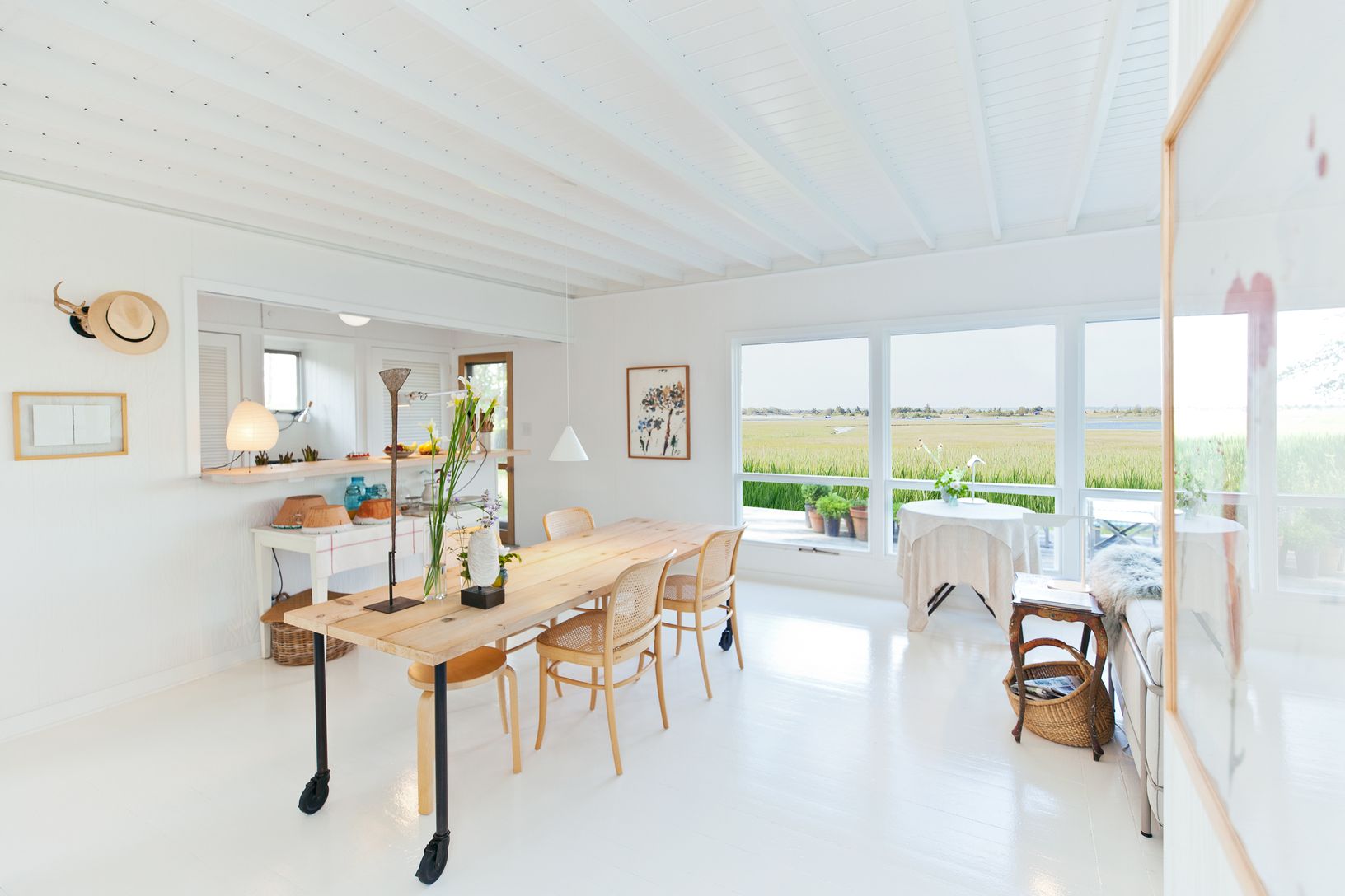 The panoramic waterfront views from this idyllic mid-century modern dwelling are mesmerizing and magical. Unobstructed vistas of Accabonac Harbor and the bays capture an ever changing and iridescent light. Surrounded entirely by nature, the reserved land adjacent to the cottage offers absolute privacy and tranquility. The two bedroom cottage is charming, white-washed and curated to perfection. There is a serene garden behind the house, afford