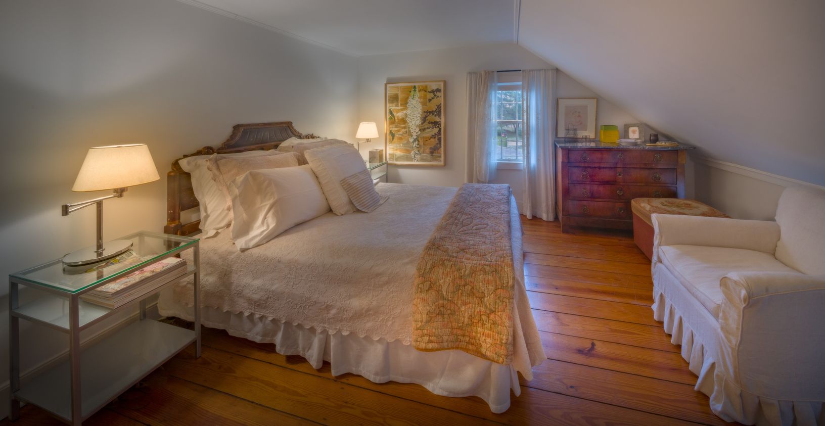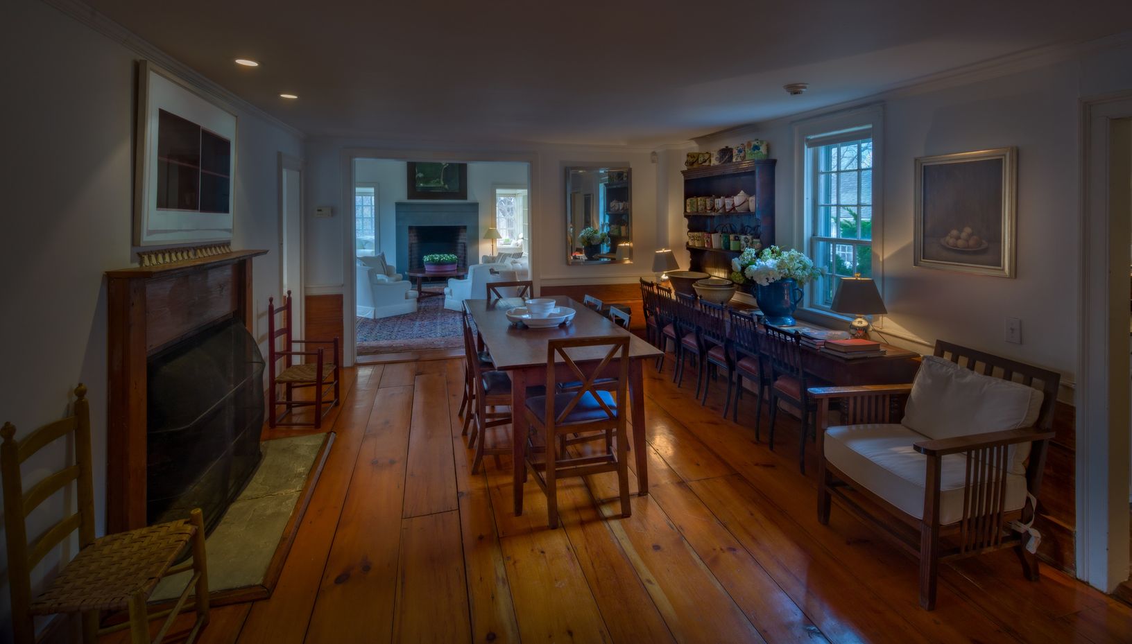 This exquisite property, one of the distinguished homes that defines the character of Remsenburg's beautiful Main Street, started out as a simple cottage in the 1790s and has been lovingly renovated and expanded by its current owner, a world-renowned interior designer. The attention to detail that went into the project is evident in every room, where sophisticated, livable spaces were created by seamlessly blending modern elements with the o