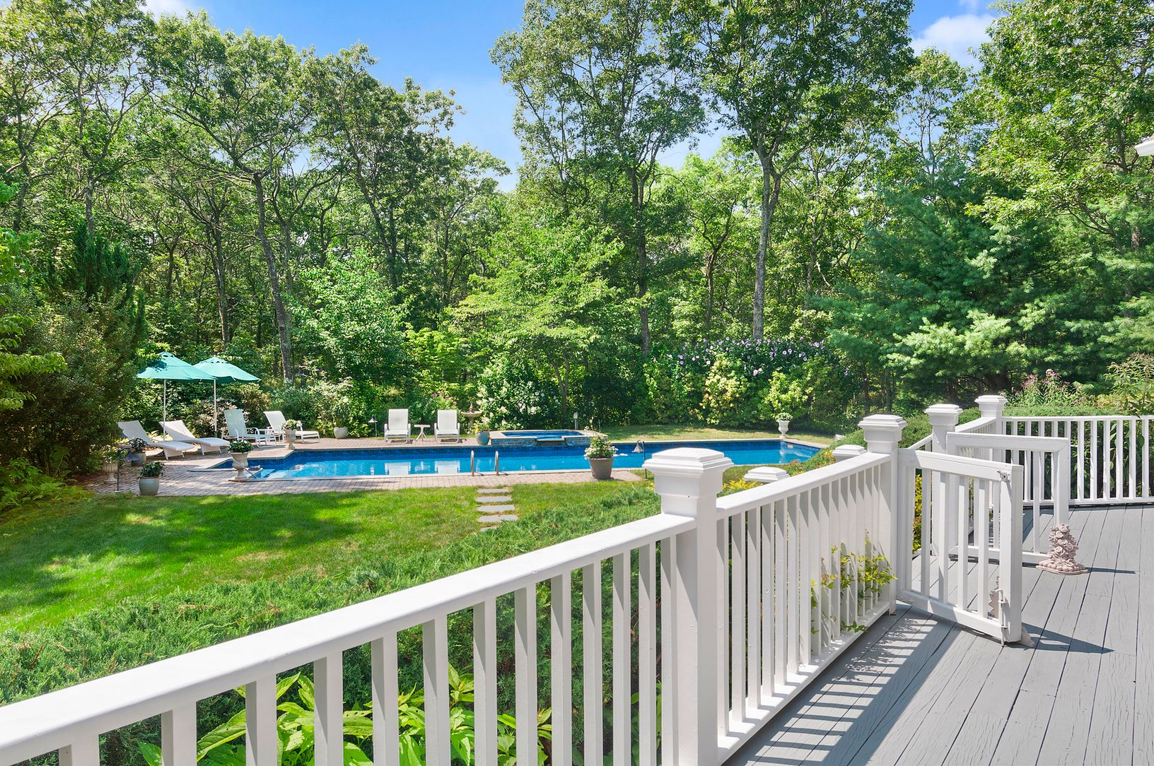 At the end of a cul-de-sac, beyond the community tennis and situated alongside hundres of acres of reserve, is a perfectly laid out home and yard, on 2 East Hampton acres. A timeless layout and 5 beautiful bedrooms are just the start to this heartfelt custom home. As you enter the front porch the traditional wrapping staircase, formal dining room and the den greet with warmth. Once you have entered the double height living room, the fireplac