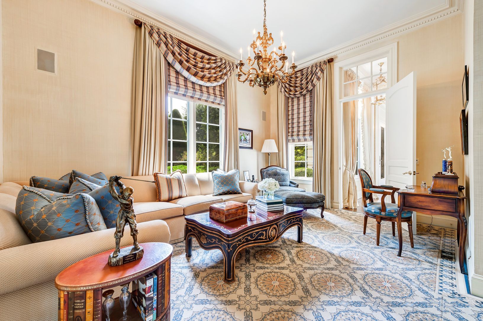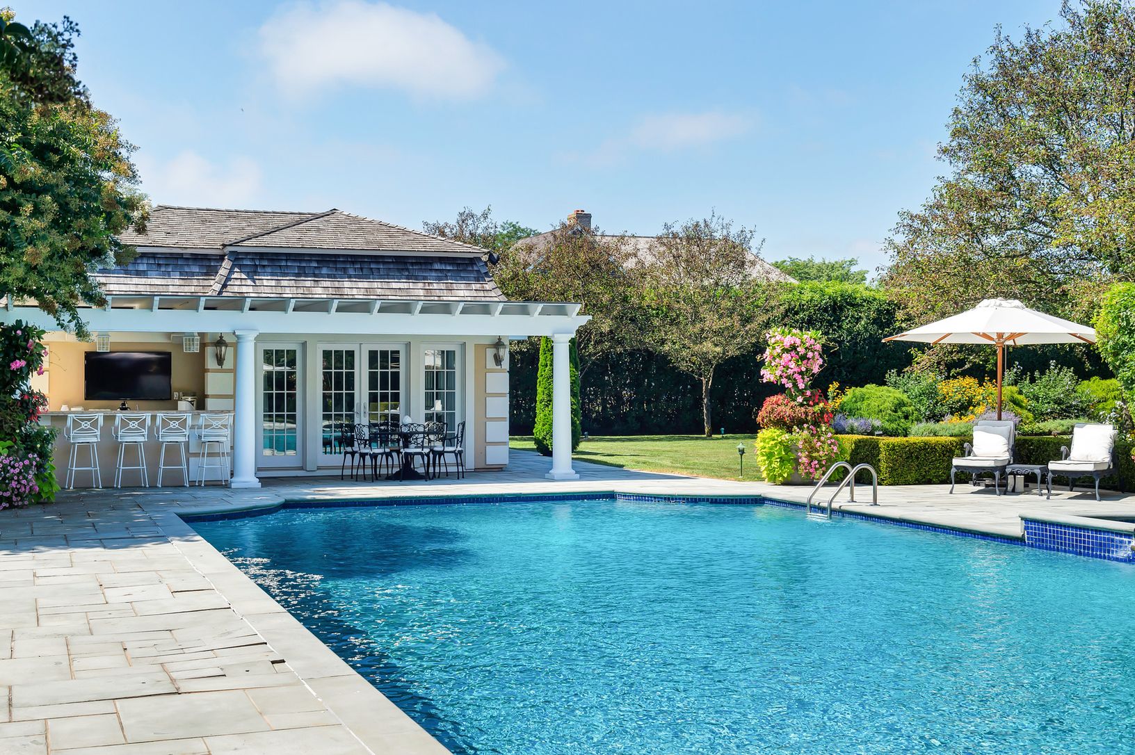 Evoking the feel of French country life at the highest level, this masterfully executed south-of-the-highway estate includes an elegant manor home, pool house, separate recreational pavilion, 60' pool with waterfall spa, playing court, and more. Set amidst beautifully planted gardens, long allees of blooming crepe myrtle trees, and sweeping broad lawns, all within minutes of Southampton's renowned sandy ocean beaches, world class golfing, top