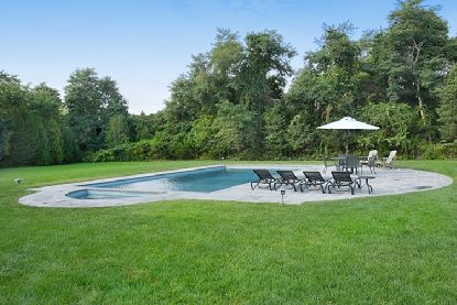 Classic shingle style 5 bedroom, 3.5 bath home is located on a private road in the heart of the Village of Quogue. Gracious covered porches welcome visitors. The front yard is large and the expansive back yard features a gunite pool with spa surrounded by a bluestone patio. Traditional details, such as wide plank hardwood flooring, crown moldings, wainscoting, transom and arched windows are details throughout this well designed home. An eat in