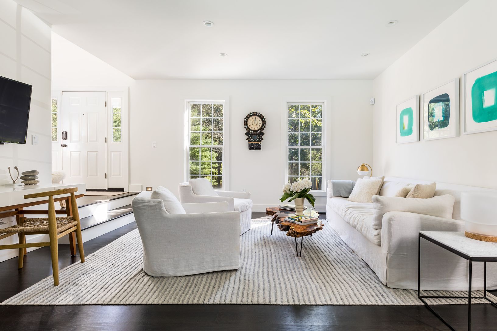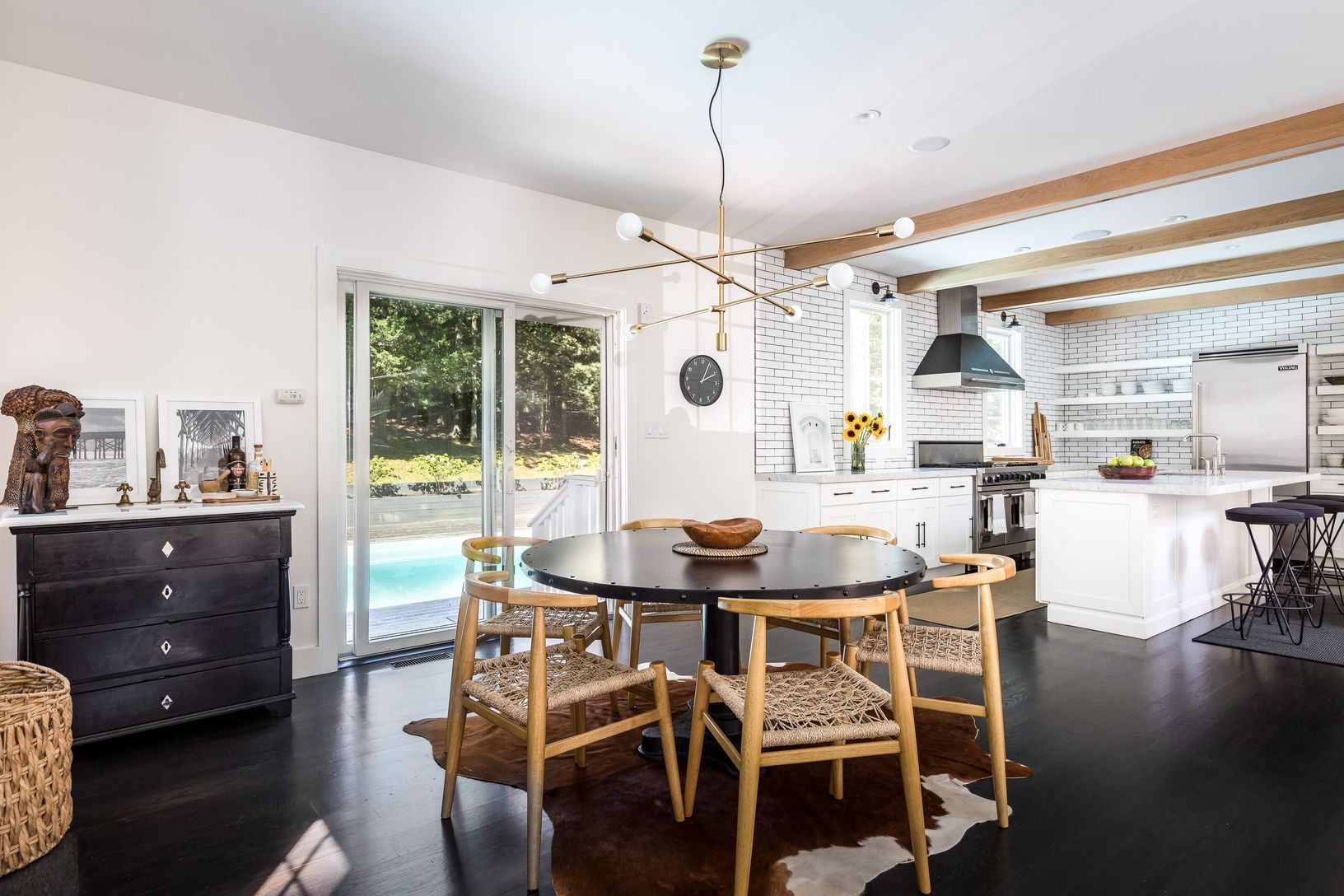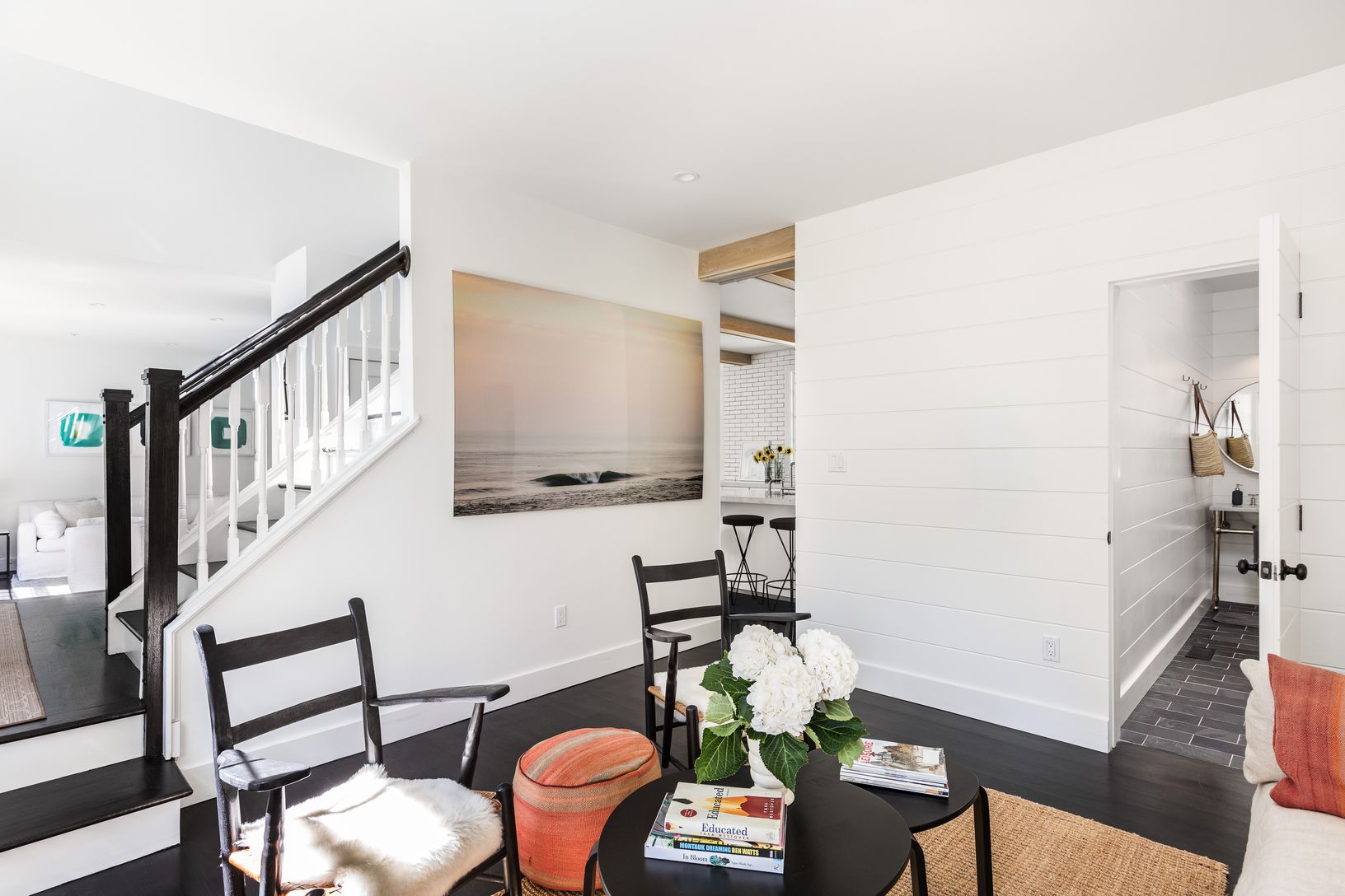 Located on a quiet street in the Settlers Landing section of East Hampton, this beautiful turn-key home sits on a half acre and is newly renovated with all top of the line fixtures and finishings. As you walk through the front door and into the foyer, you are greeted by soaring double-height ceilings, an abundance of natural light and a design that you have to see to believe. The first level of the home offers a large open kitchen with all hig