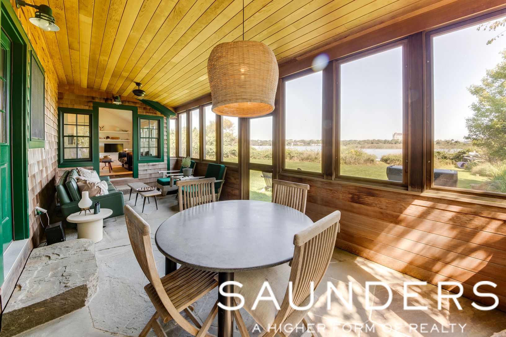 A haven of tranquility on Fort Pond in Montauk . There is a 3 bedroom , 1 bath renovated cottage with barn wood antique floors, wood burning fireplace, eat-in kitchen and a wonderful screened in porch overlooking the water. Custom built pool house and salt water gunite pool. Enjoy paddle boarding, swimming or sailing in your backyard. The property affords total privacy with a nature preserve along the west facing border. Centrally located to o