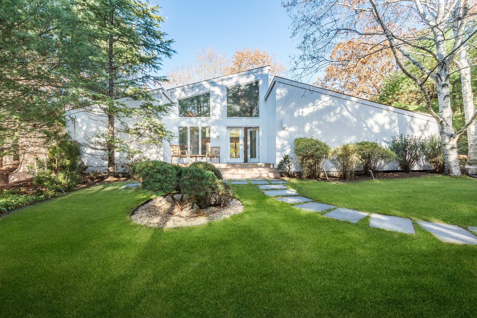 Live, work and play in this gorgeous East Hampton oasis set on 1.53 lush, pristinely landscaped grounds! The enchantment begins with the stunning exterior of this contemporary beauty, which will capture your heart the moment you see it. Enjoy picturesque serenity afforded by beautiful gardens including tranquil Zen areas, a multilevel garden by the pool, and custom vegetable garden for growing fresh healthy produce. Enveloped by privacy trees,