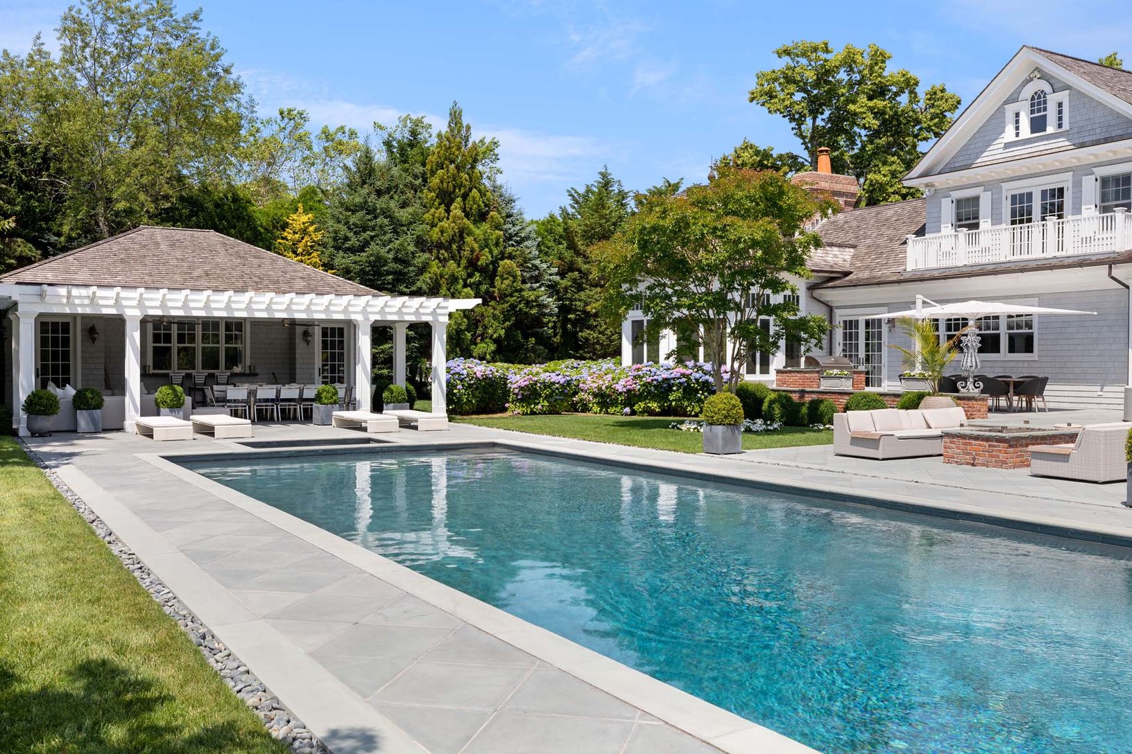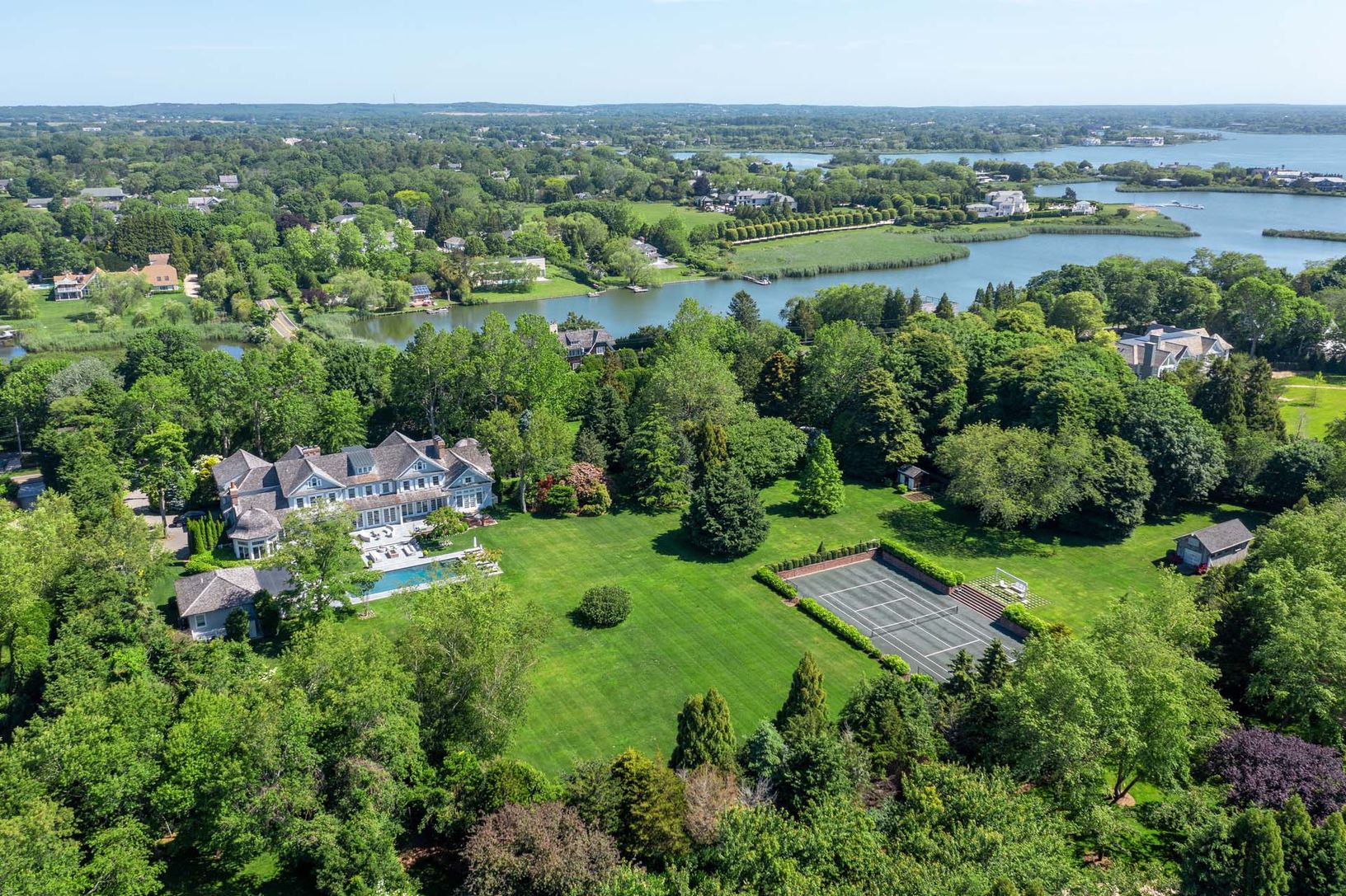 Nestled on 4 private acres+/- rests this gated compound featuring 12 bedrooms, 12 full and 2 half bathrooms in totality, an 8,257 SF+/- main residence, a 2,000 SF+/- guest cottage, pool house, heated gunite pool and spa, sunken tennis court, half basketball court and sprawling lawns. Ideally located in Water Mill South, 535 & 553 Flying Point Road is situated 1 mile+/- from Flying Point Beach, and in close proximity to Southampton’s Main S