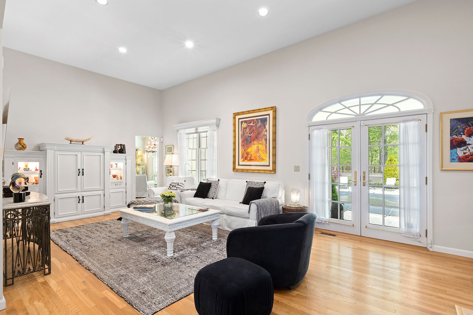 Perfectly designed turnkey oasis. With a scenic nature filled property line, this spacious home with cathedral ceilings throughout, provides the privacy and tranquility you need in a Hamptons home. This three bedroom home can easily be renovated to add a fourth bedroom within the existing floorplan. Moments away you have private beach rights on the Peconic Bay. Entertaining is easy in this home with the lavish exterior and heated pool. In the